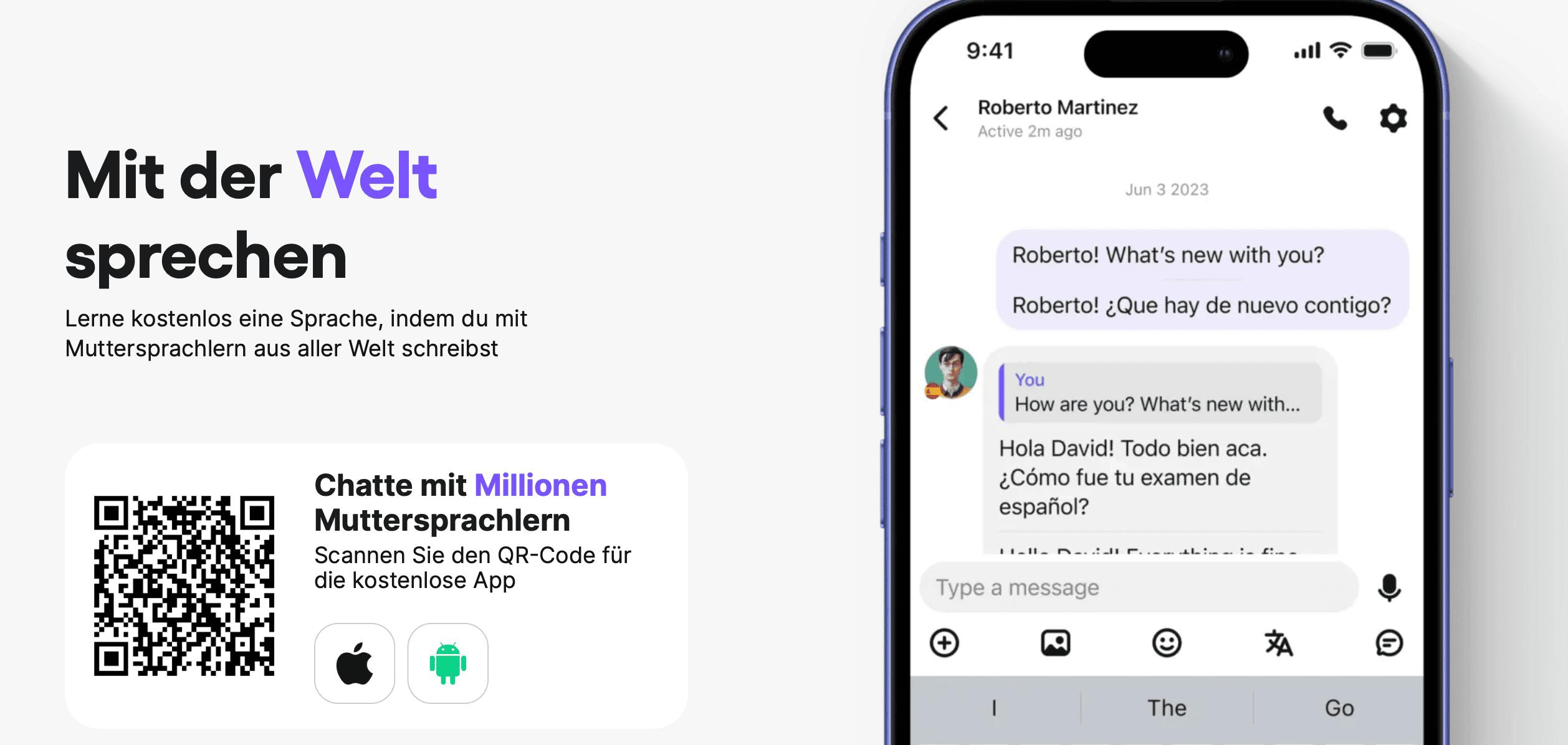 Du kannst Englisch, Spanisch, Französisch, Japanisch, Koreanisch, Mandarin-Chinesisch, Kantonesisch, Portugiesisch, Deutsch und viele weitere Sprachen üben. Die App ist für Android und iOS verfügbar.