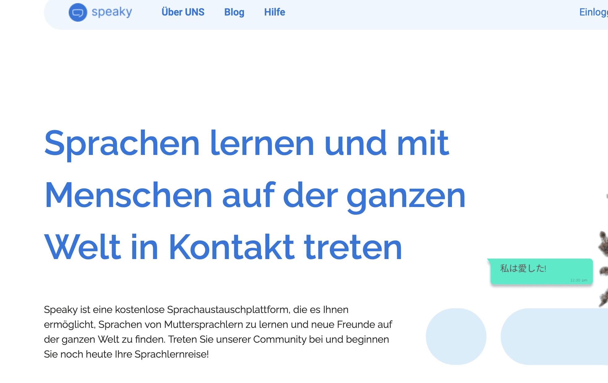 Speaky ist ebenfalls eine Sprachaustauschplattform, allerdings handelt es sich hierbei ausschließlich um einen Chat. Die Benutzeroberfläche ähnelt der eines beliebigen Mobiltelefons und hat den Vorteil, dass die KI ständig die Rechtschreibung korrigiert, sodass man sehr gut Grammatik lernen kann.