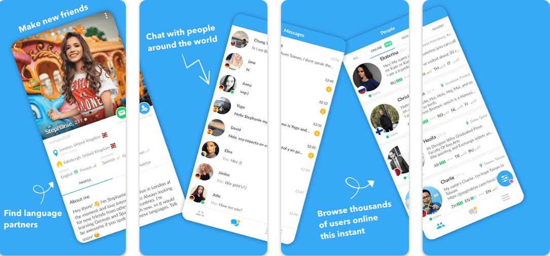 Die Idee von HelloTalk ähnelt stark der anderer Apps auf dieser Liste: Sie sollen sich mit anderen Muttersprachlern anfreunden und sich unterhalten, um die Sprache zu üben. Die App versteht sich als Sprachaustauschplattform. Sie nutzt Text, Sprache und Video und verfügt über Tools wie Übersetzer, Korrektur und Vorlesen von Nachrichten.