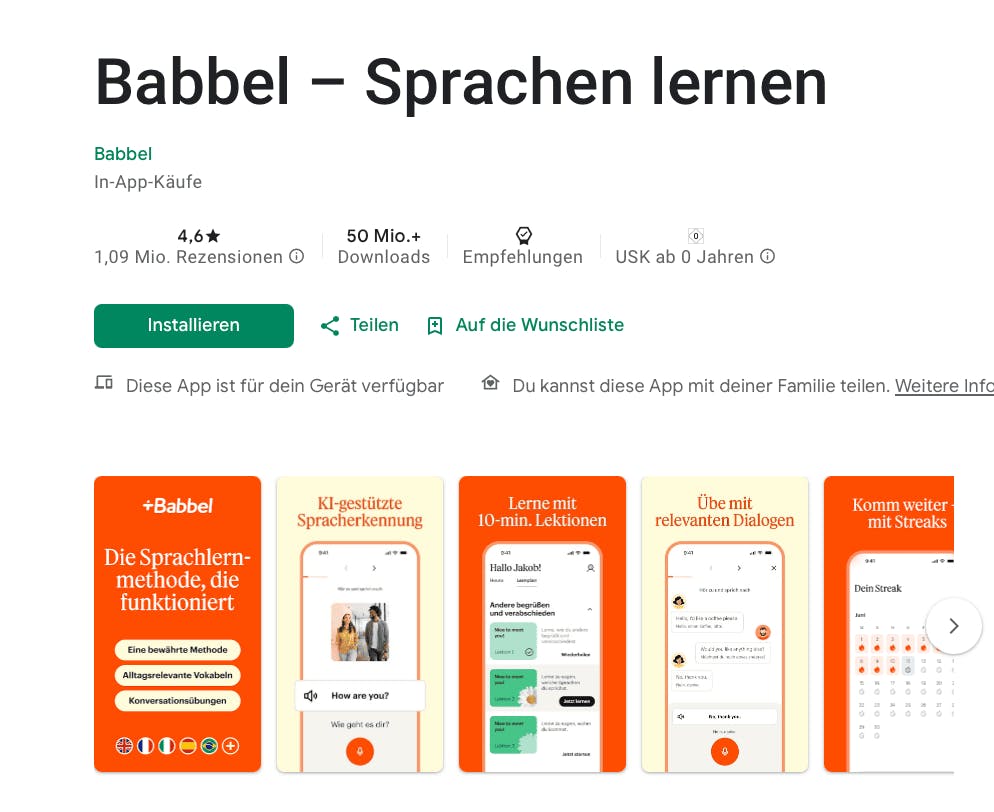 Dieser Tarif umfasst auch die Babbel-App, über die Sie Zugang zu den Lektionen und Übungen, Spielen und verschiedenen Aktivitäten erhalten, die beworben werden.