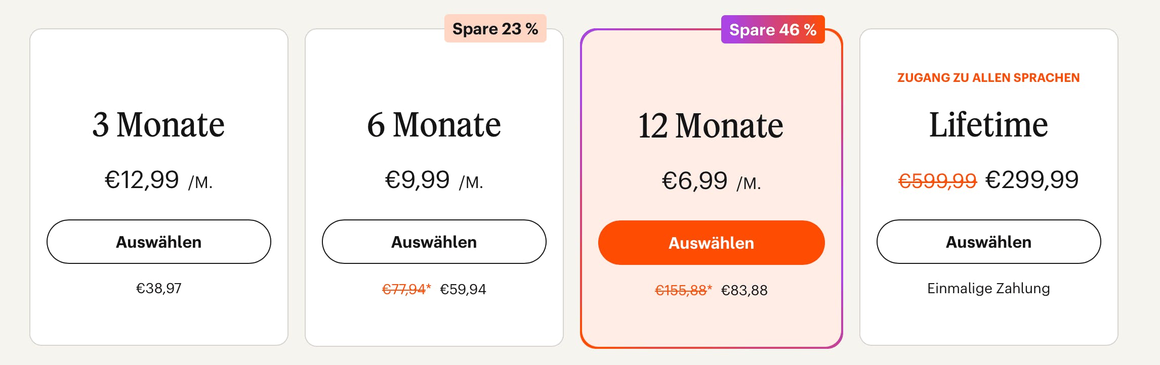 Bei Babbel gibt es jedoch drei Abonnementoptionen: halbjährlich, jährlich und lebenslang: