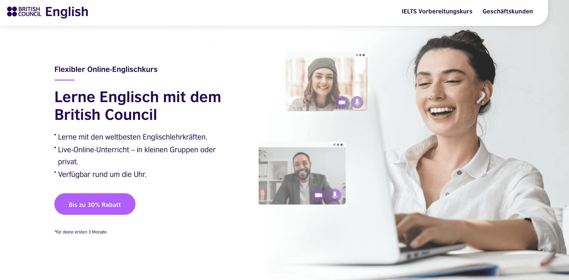 Der British Council ist eine weltweit renommierte Institution, die bereits mehr als 100 Millionen Schülern dabei geholfen hat, die englische Sprache und all ihre Facetten zu beherrschen. Der Unterricht findet sowohl in den Bildungszentren als auch online statt.