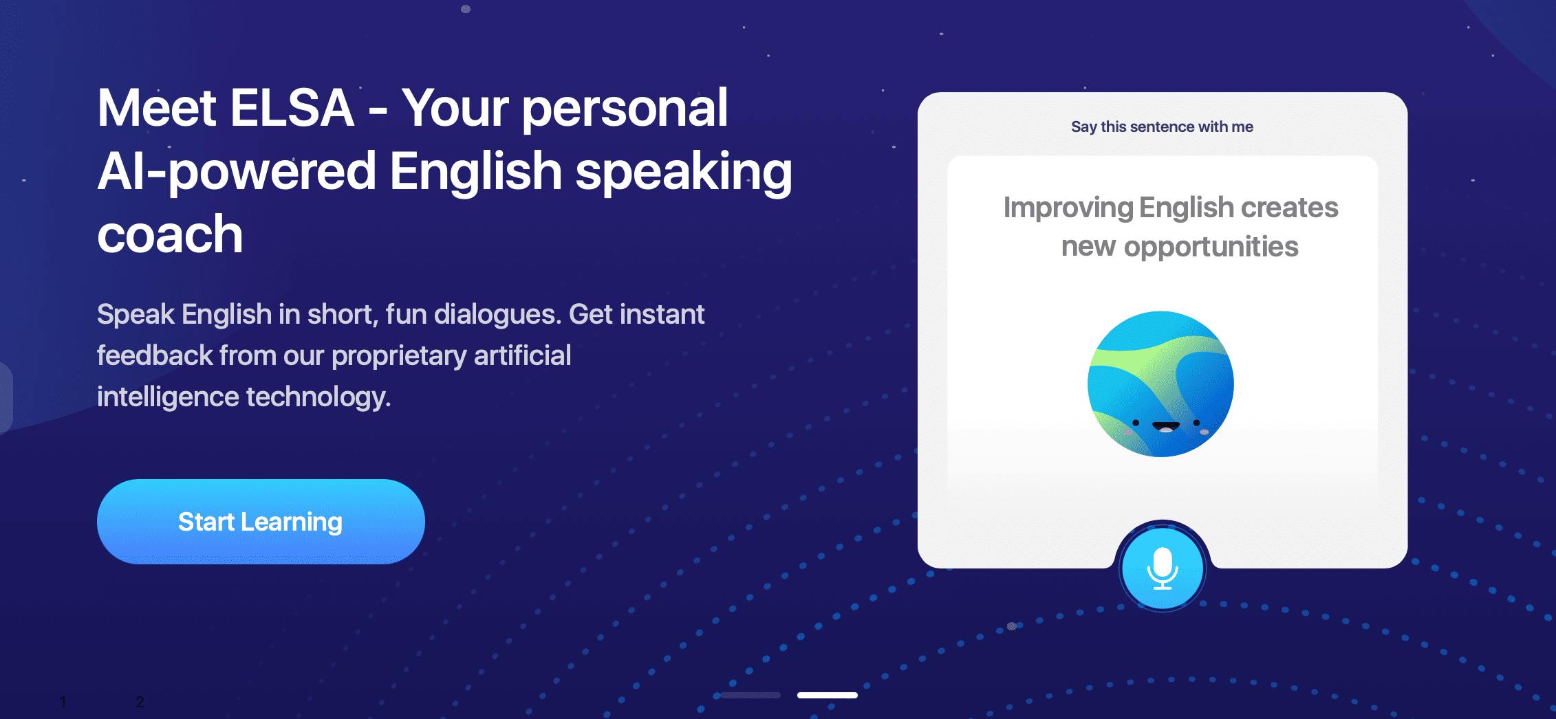 ELSA ist eine App, die künstliche Intelligenz und Sprachdaten von englischen Muttersprachlern nutzt, die mit unterschiedlichen Akzenten sprechen und sofortiges Feedback zur Aussprache des Benutzers geben können.