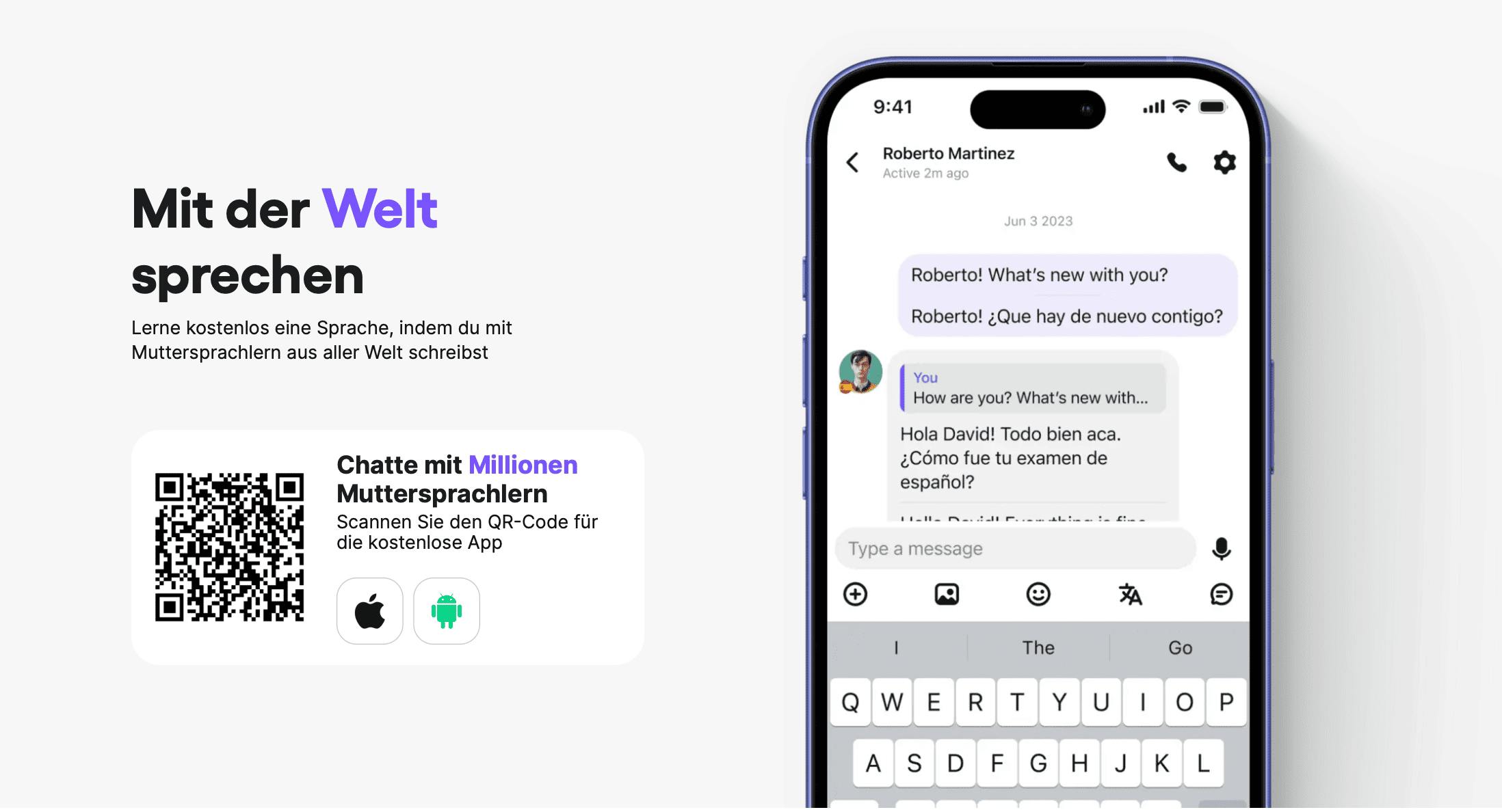 Die App ist jederzeit verfügbar, sodass Sie mit anderen Nutzern ins Gespräch kommen und in Ihrer Freizeit üben können.