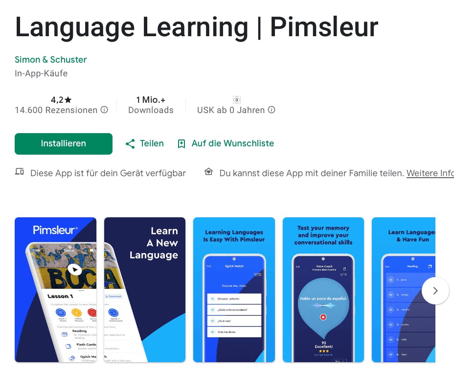 “Es ist eine sehr gute App. Sie ist leicht zu verstehen und die Art und Weise, wie sie unterrichtet, ist sehr gut gelungen. Es gibt Sprachen, für die nicht alle Niveaustufen verfügbar sind, aber einige wichtige sind dabei.”
