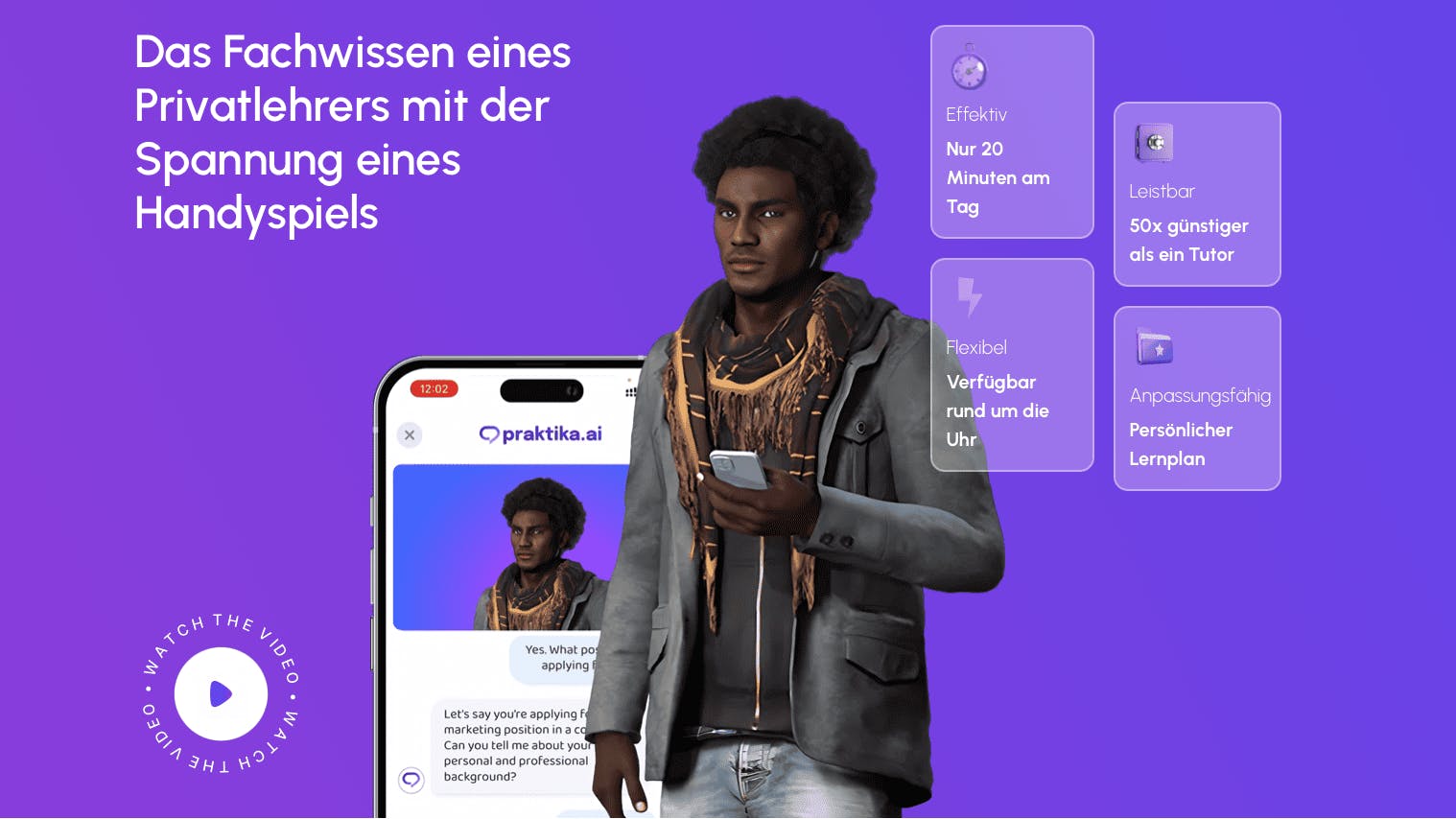 Praktika ist eine App, die sich ausschließlich auf das Unterrichten von Englisch konzentriert und künstliche Intelligenz als Hauptantrieb für die Erstellung ihrer Inhalte nutzt.