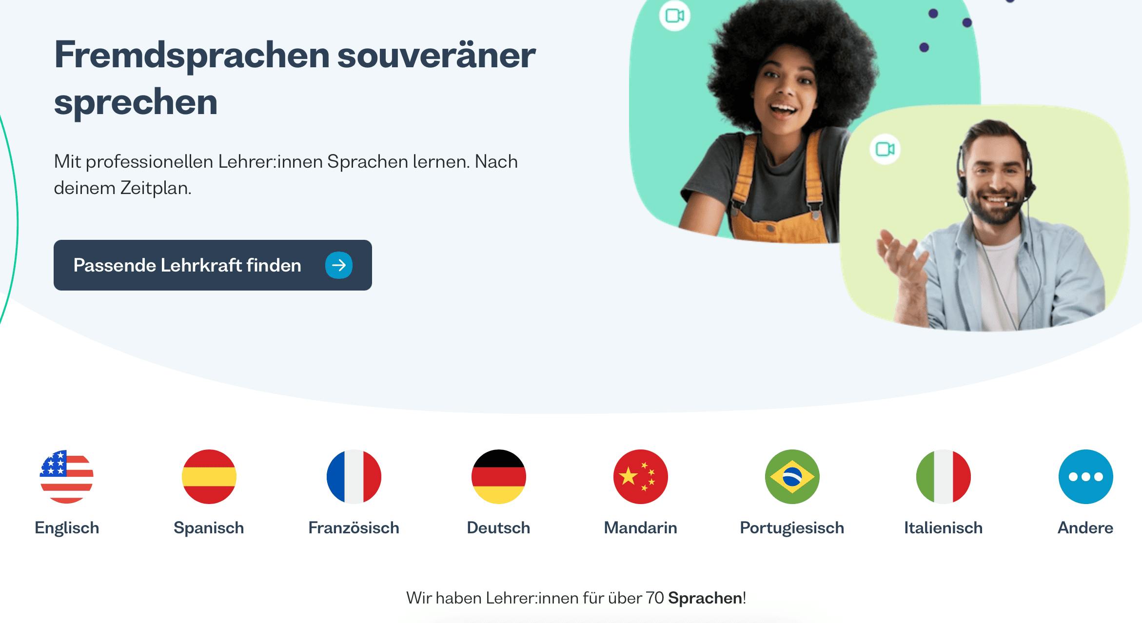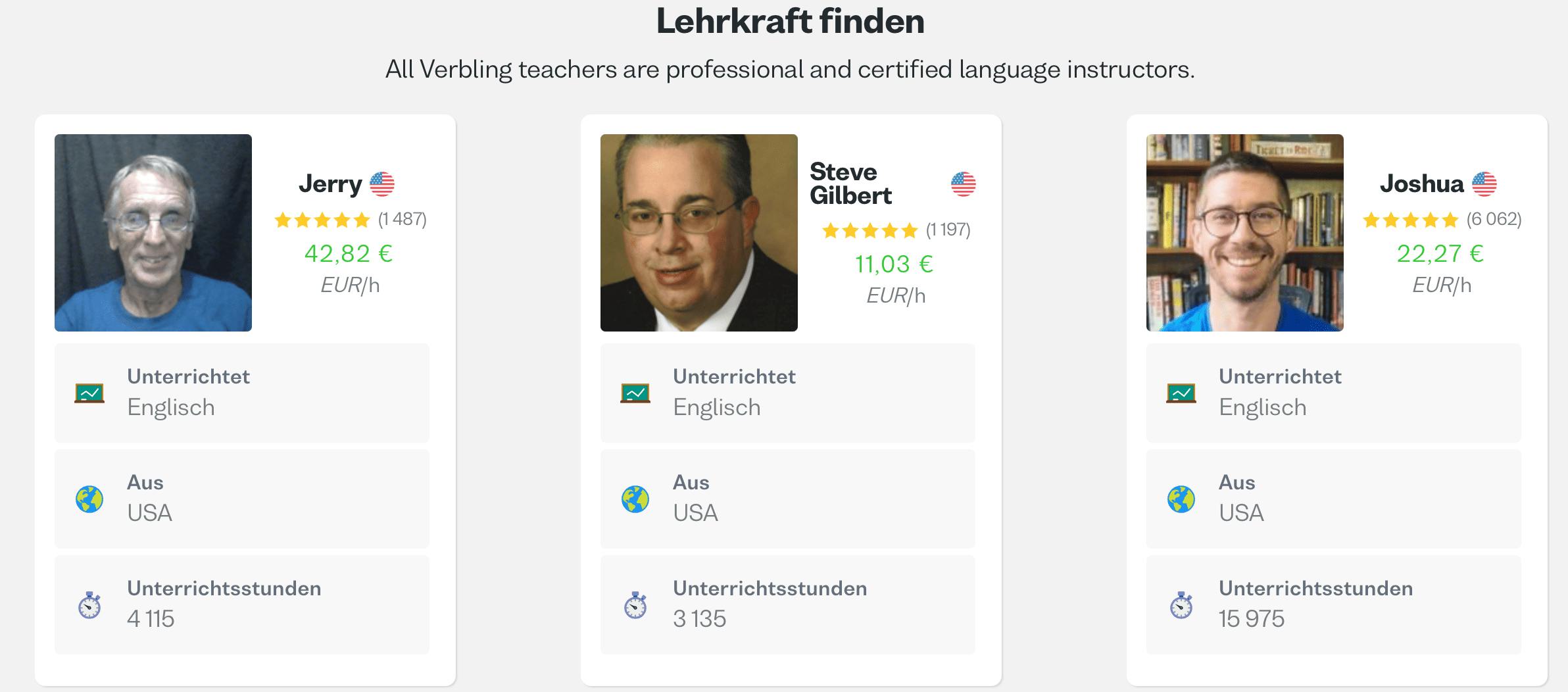 Verbling ist eine interessante Option, wenn Sie viele Lehrer ausprobieren möchten, bis Sie denjenigen finden, der am besten zu Ihnen passt, da es Ihnen Flexibilität bietet und viele Lehrer in seinem Katalog registriert sind.