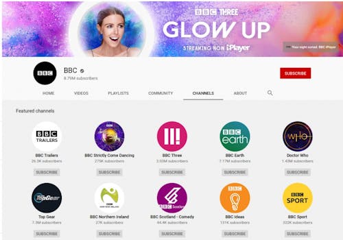 Por otro lado, la BBC tiene una gran cantidad de canales vinculados que es impresionante. Tienes opciones para todos los gustos: de música, deporte, comedia y mucho más.