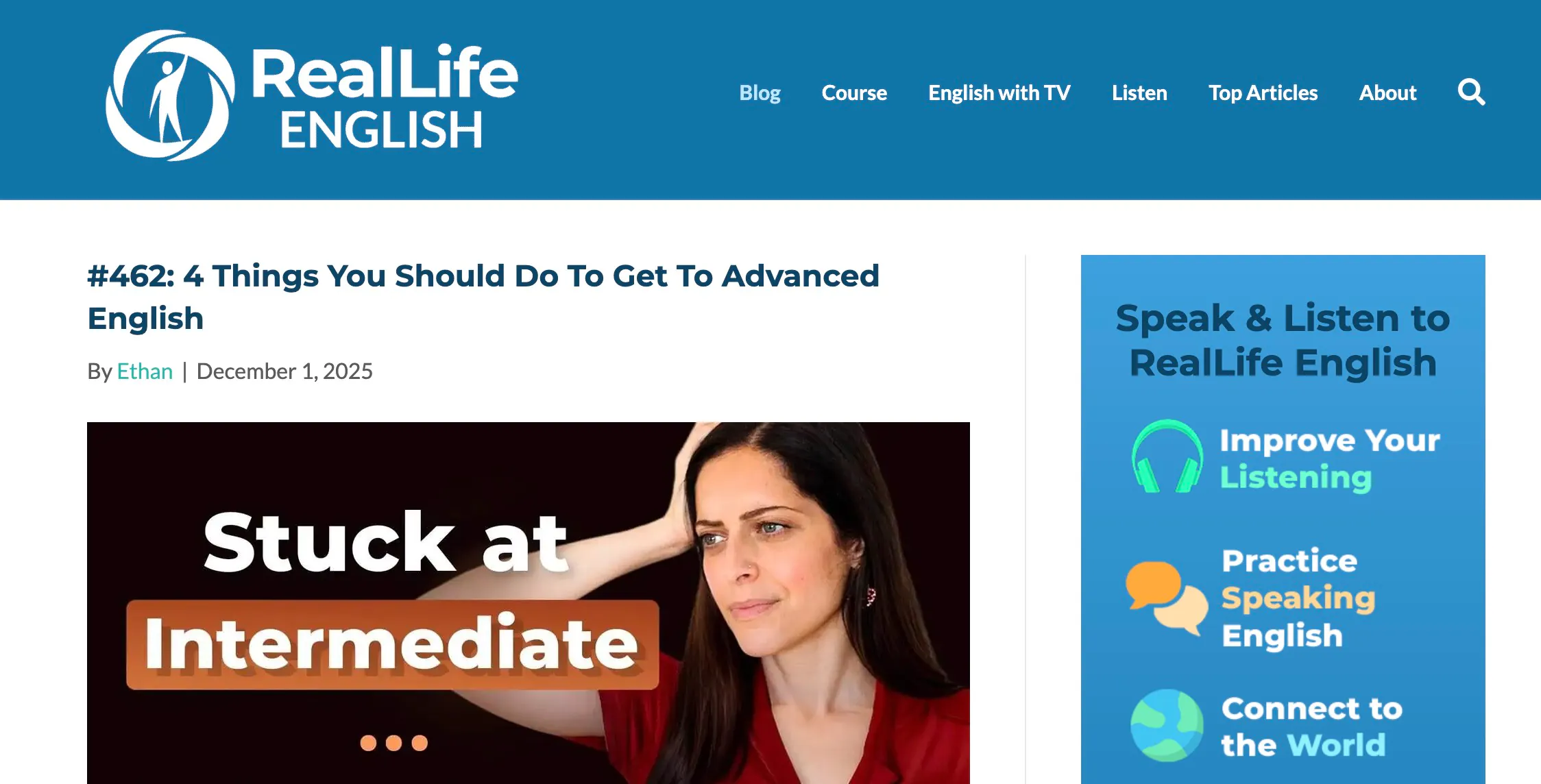 Por último, el blog de RealLife English está pensado para mejorar tu inglés conversacional. Su intención es combinar material escrito con videos y audios para aprender a hablar y entender inglés real.