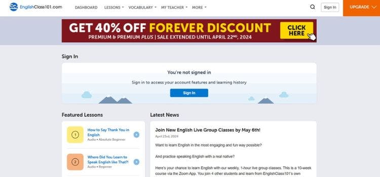 Para acceder a todo su contenido, primero debes registrarte en la web con tu correo electrónico. A partir de allí, EnglishClass101 te regala una prueba gratis de 7 días para que puedas verificar si su método se adapta o no a tus necesidades.