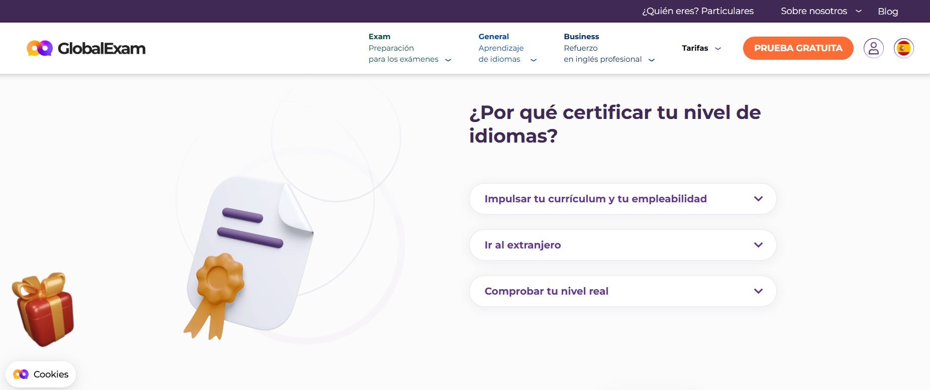 Como su nombre lo indica, Globalexam se dedica principalmente a la preparación de exámenes para la obtención de un certificado de idiomas., entre los cuales destacan el TOEFL, TOEIC o Cambridge.