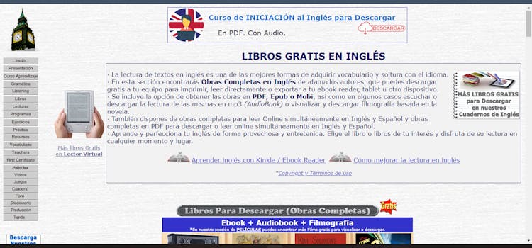 Sus recursos internos como las fichas de estudio, los ejercicios y sobre todo la gran variedad de libros en inglés que tienen disponibles para descargar son una herramienta asombrosa.