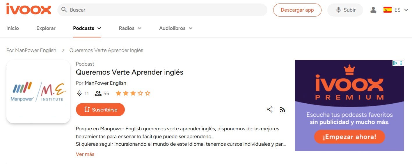 Queremos Verte Aprender Inglés es el podcasts del instituto de inglés chileno Manpower English, el audio se desarrolla en su mayoría en español.