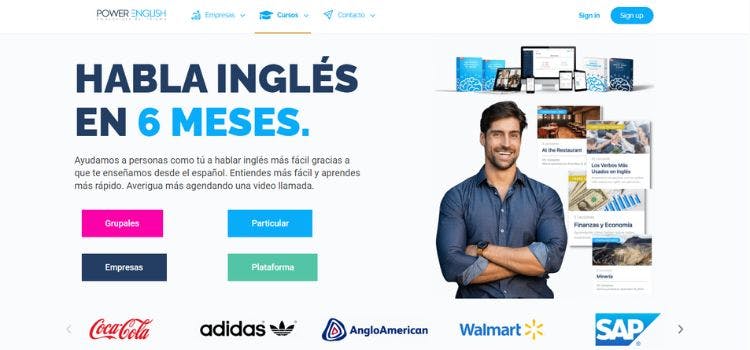 Por su parte, para el curso con clases particulares no se anuncia su precio en la página principal de Power English. Lo mismo ocurre con el servicio para las empresas.