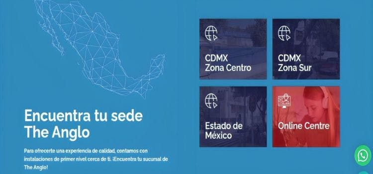 Actualmente, la escuela de inglés The Anglo tiene tres sucursales en México, las cuales se encuentran en las siguientes direcciones: