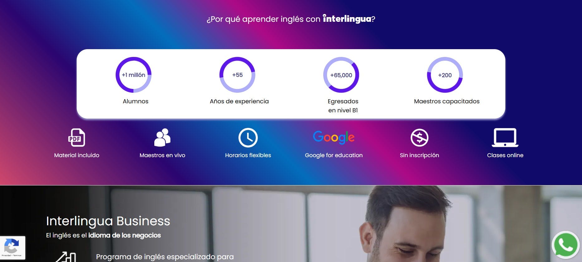 | Interlingua | Quienes buscan cursos online con horarios variados. |