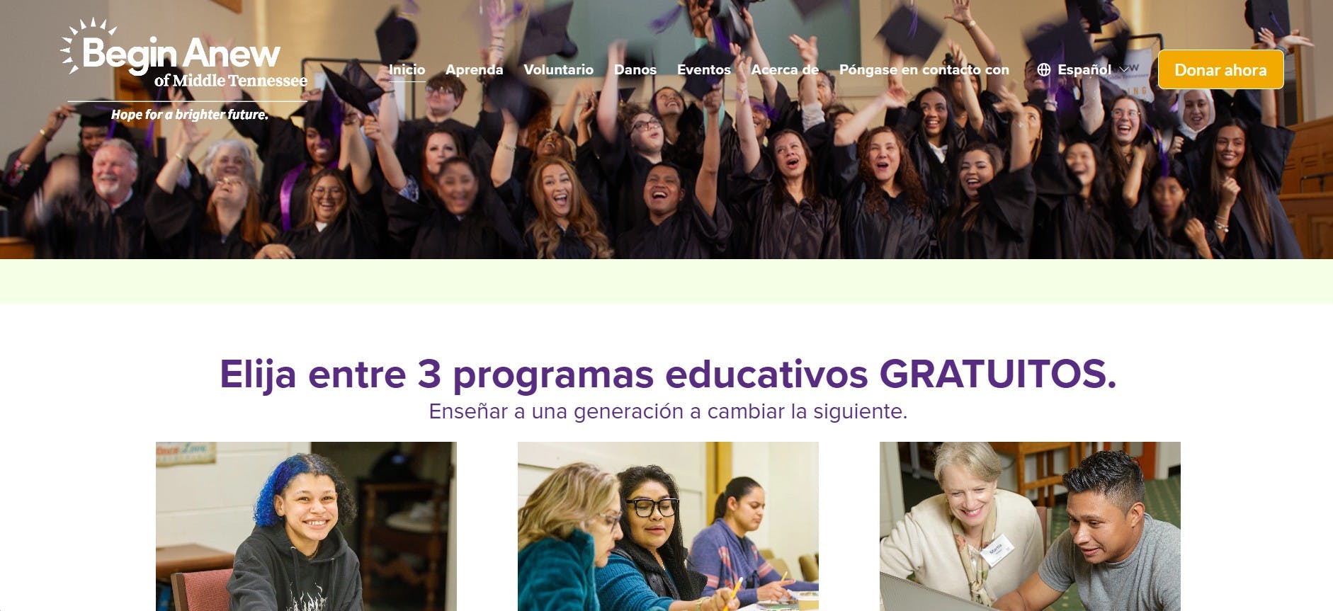 | Begin Anew of Middle Tennessee | Personas que valoran tutorías personalizadas y apoyo comunitario con horarios limitados. |
