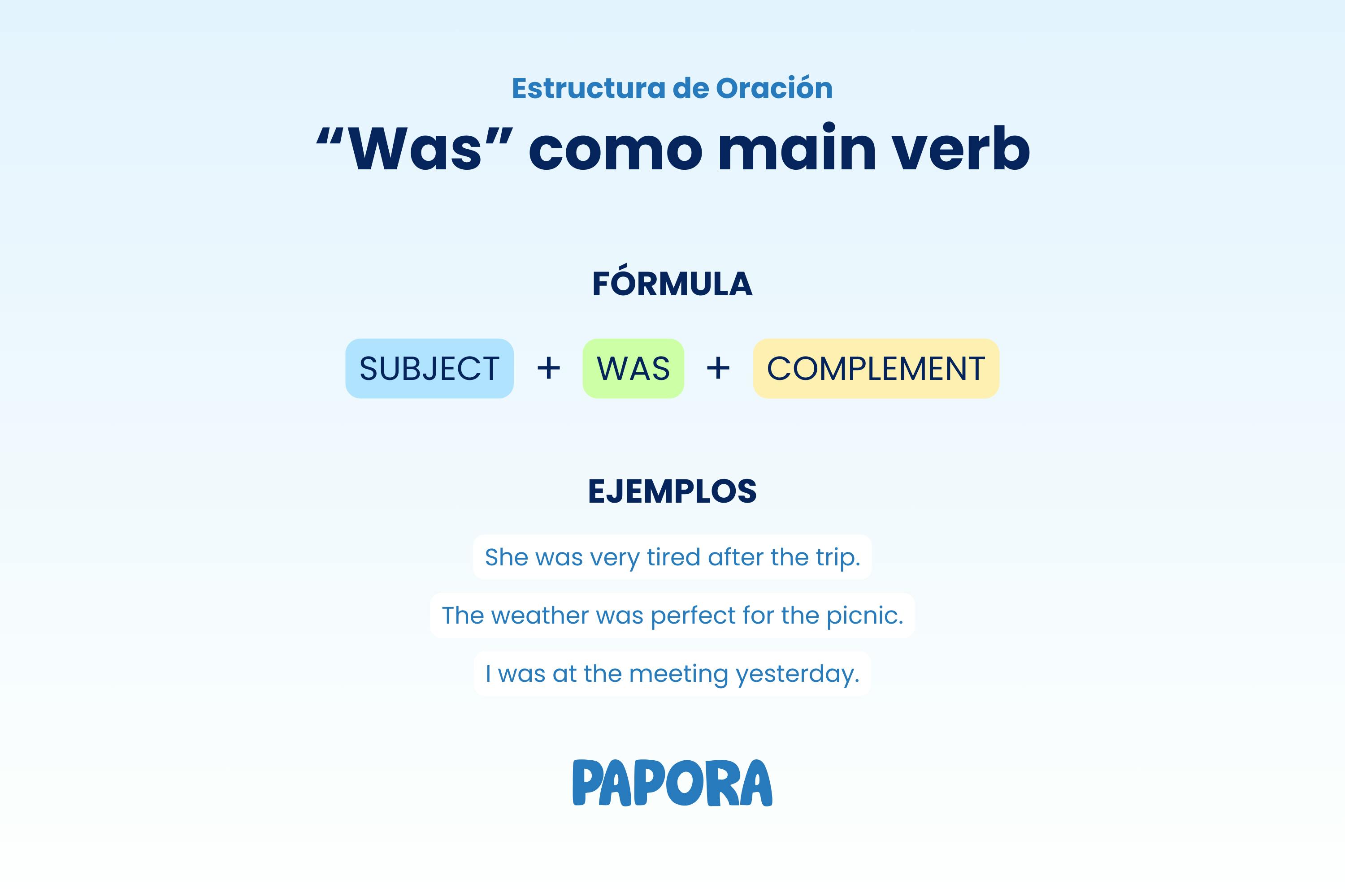 - Was se usa con: I, he, she, it (singular). Ejemplo: I was tired / She was at home