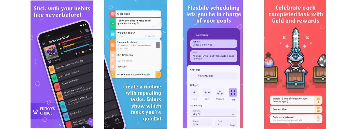 Avec cette application, les tâches à accomplir se transforment en missions à compléter. De cette manière, et à mesure qu'elles sont réalisées, l'utilisateur collecte des points et monte ainsi de niveau. Bien sûr, il est nécessaire de créer un avatar pour jouer.
