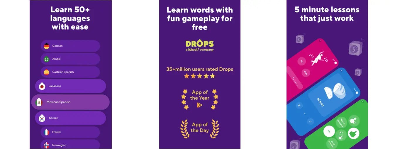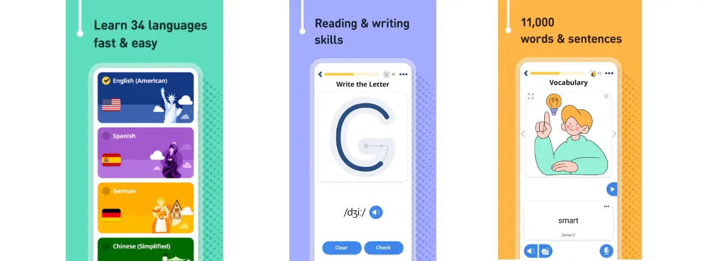 Cette application propose 34 langues, enseignées par le biais de jeux. Elle possède une version gratuite et une version premium. Elle offre plusieurs jeux éducatifs pour améliorer les compétences nécessaires en anglais.