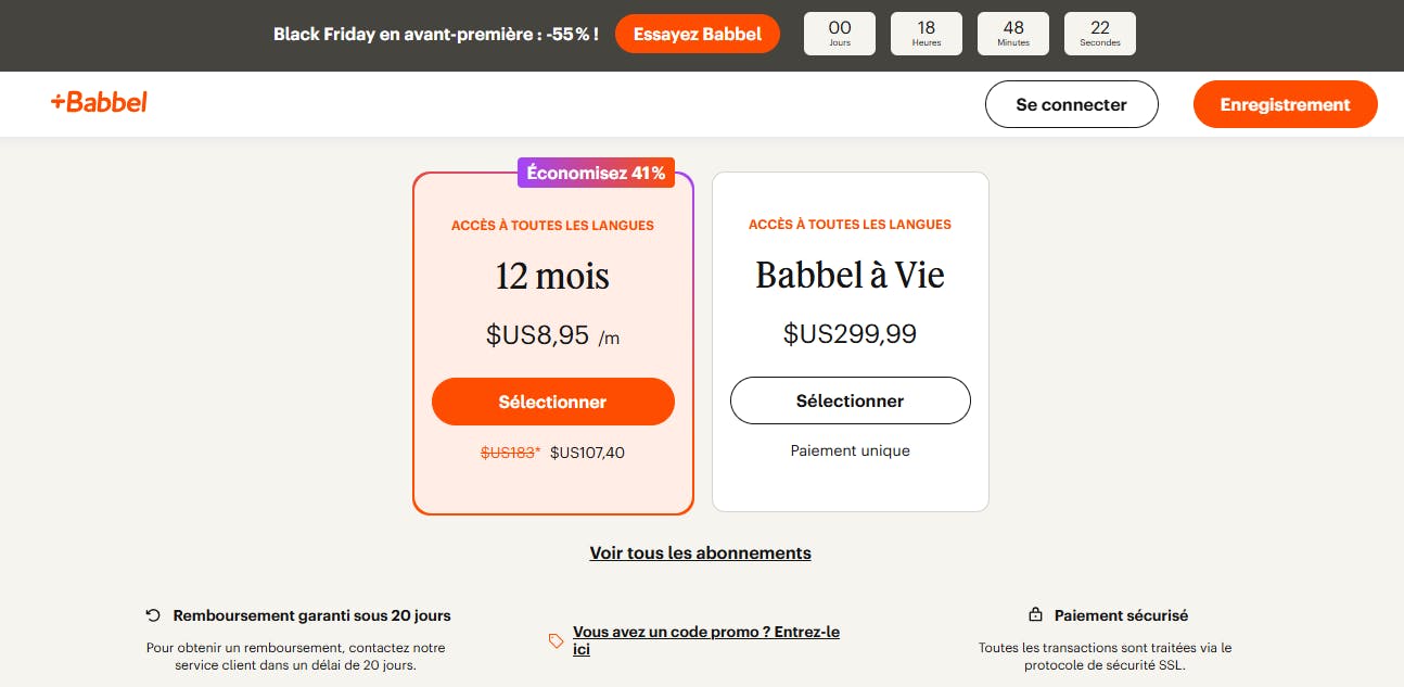 Ce plan inclut également l'application Babbel, où vous aurez accès aux leçons et exercices, aux jeux et à plusieurs des activités qu'ils promeuvent.