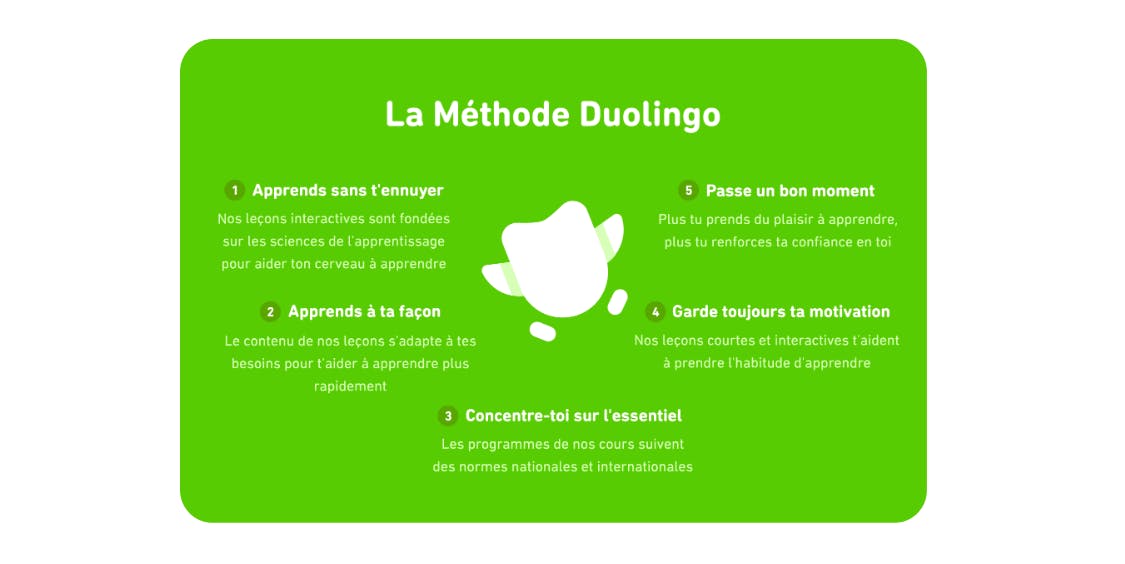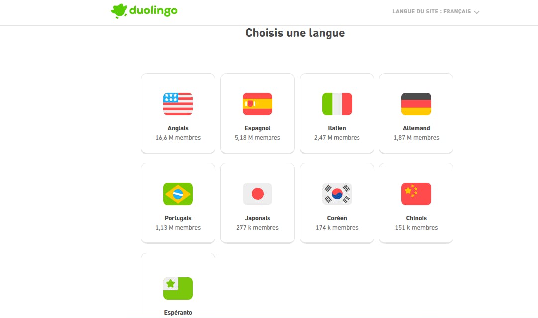 Duolingo est l'une des applis éducatives les plus téléchargées au monde pour la variété des langues qu'elle enseigne, avec plus de 100 cours dans plus de 40 langues.