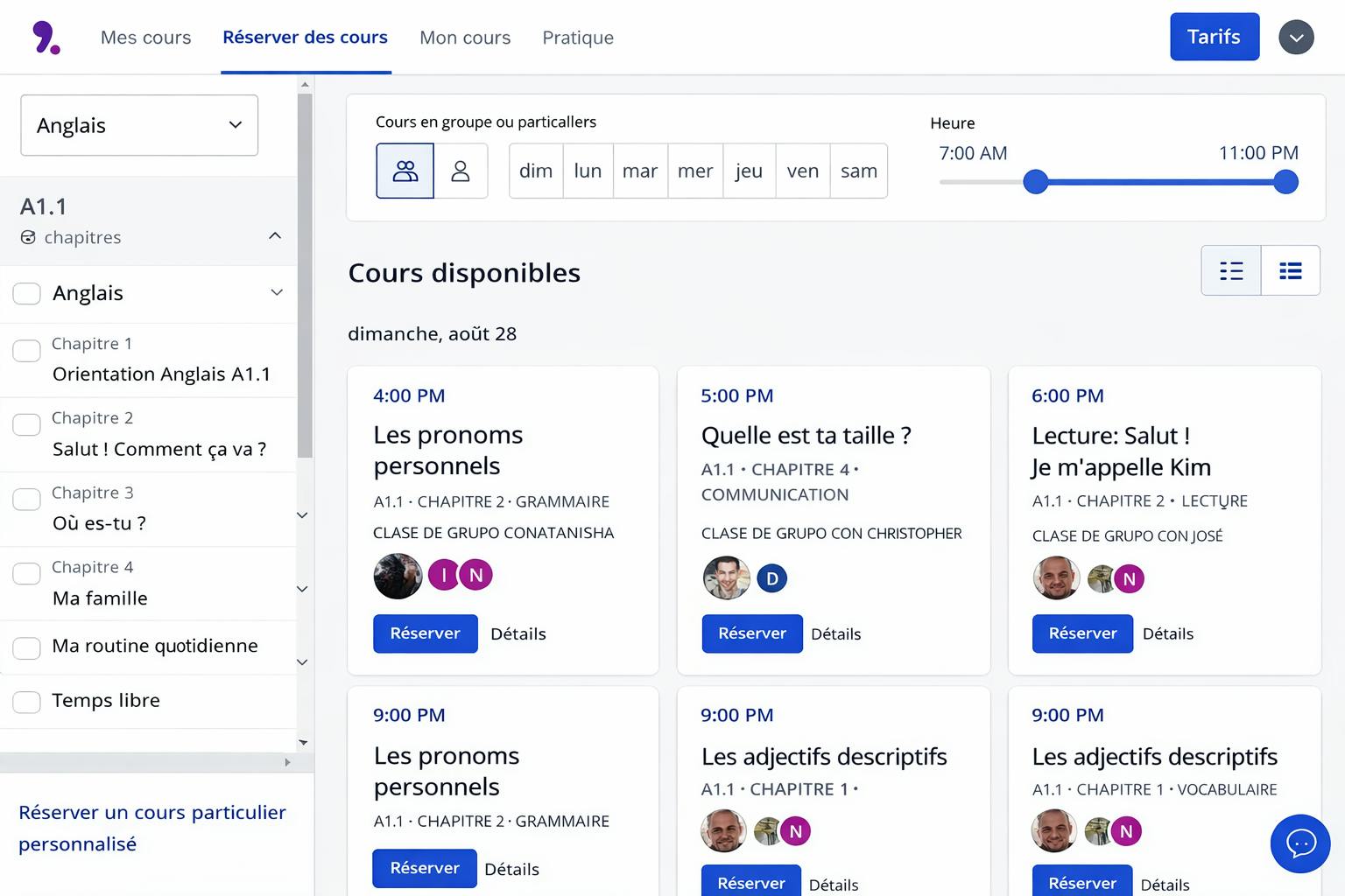 Une fois que vous avez réservé votre cours, avez une connaissance l'heure, le sujet et savez quel professeur donnera la leçon, vous allez pouvoir commencer.
