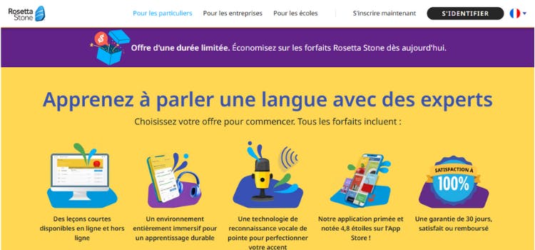 Rosetta Stone offre l'opportunité d'apprendre 5 langues différentes. Leur proposition se base sur apprendre l'anglais comme tu as appris ta langue maternelle, à travers des images et des mots, en expérimentant le monde dans la langue.