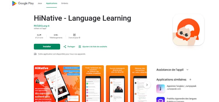 HiNative, c'est une appli avec laquelle tu peux apprendre différentes langues en ayant une conversation avec un natif et même en te faisant des amis dans la langue que tu veux apprendre.