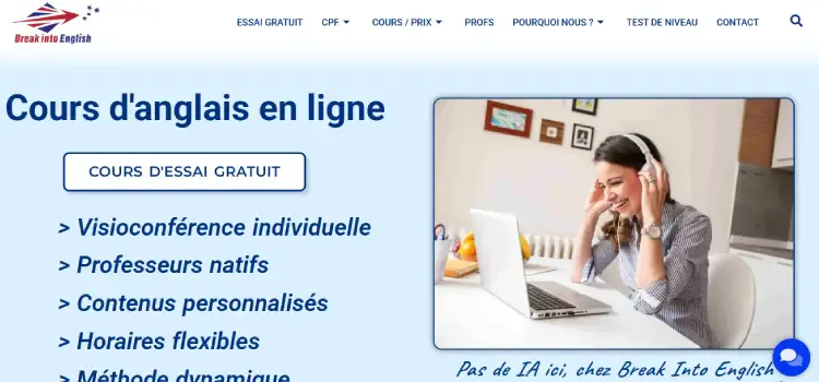 Break Into English propose des cours d'anglais en ligne dynamiques, en visio individuelle et élaborés sur mesure pour vous faire progresser rapidement dans vos objectifs personnels et professionnels. La méthode de Break Into English a été développée au cours de nombreuses années d'expérience en entreprise et se centre essentiellement sur l'expression et la compréhension orales.
