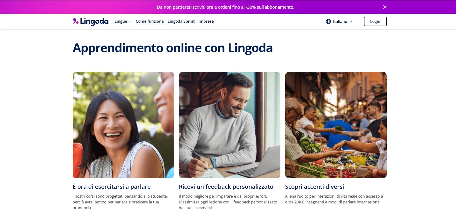 Tra i principali vantaggi dei corsi di inglese Lingoda c’è la presenza di insegnanti madrelingua, che lavorano in un ambiente immersivo basato su conversazioni reali e contestualizzate.