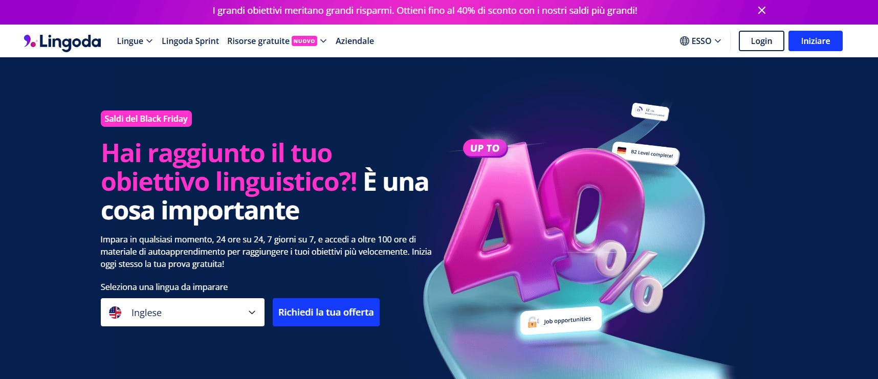La piattaforma è pensata anche per chi parte da zero e vuole imparare l'inglese da principiante, salendo di livello poco a poco. Inoltre, garantisce orari flessibili.