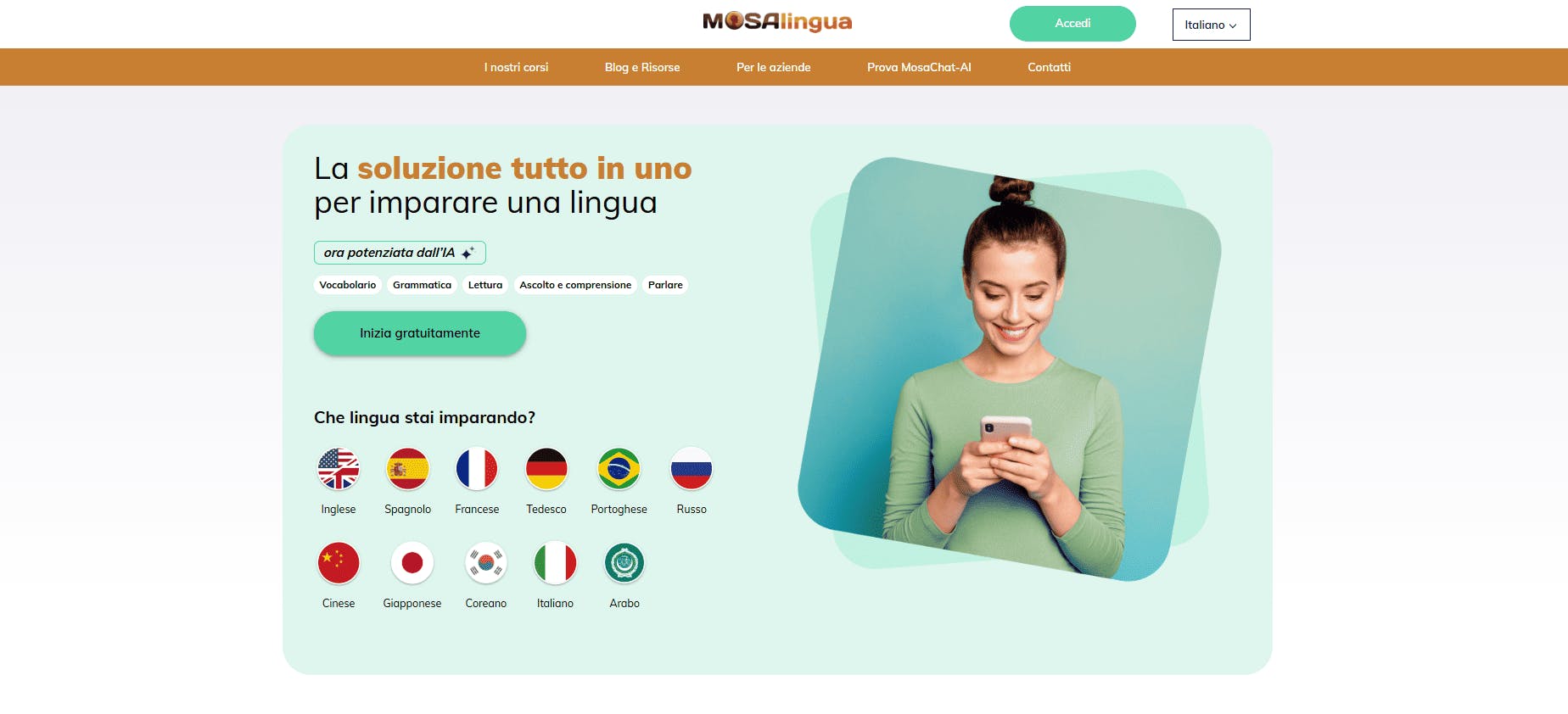 ➡️ MosaLingua è disponibile in due formati: un sito web e un'app per dispositivi mobili che puoi trovare sull'App Store per Android o iOS.