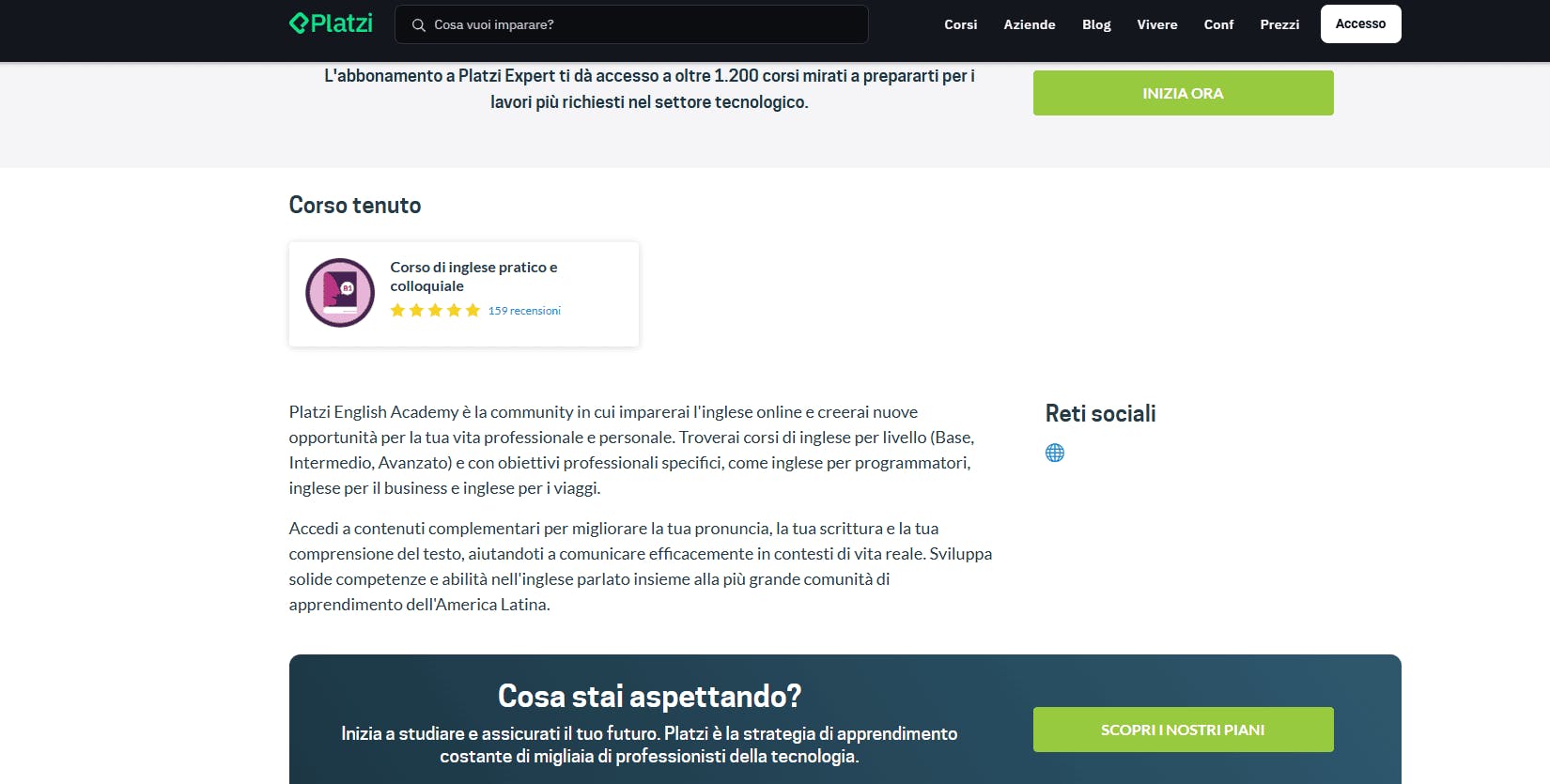 Se cerchi solo di imparare l'inglese, devi considerare che Platzi è una piattaforma che offre molti corsi al di là della lingua.