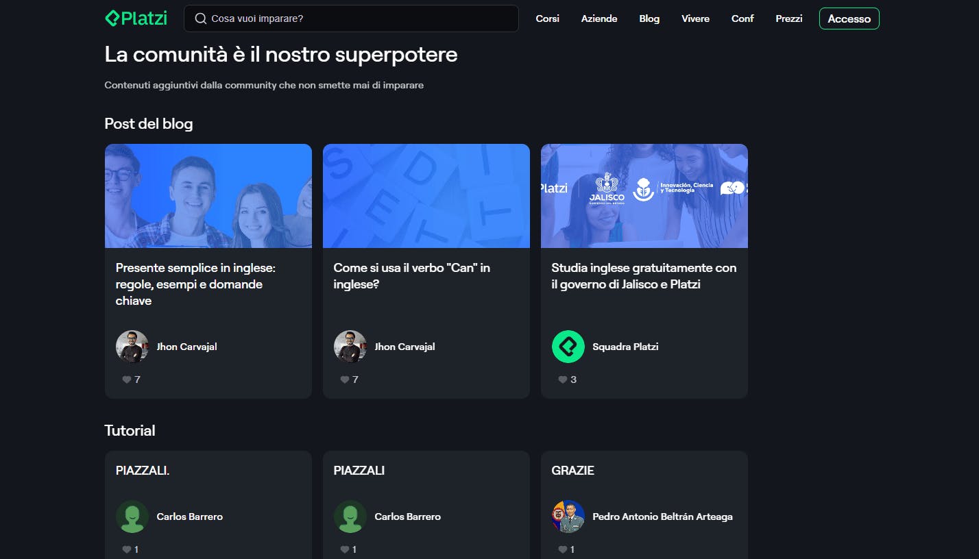 | Contatto con la community Le lezioni includono sezioni di commenti dove gli studenti condividono dubbi, risposte ed esperienze. |