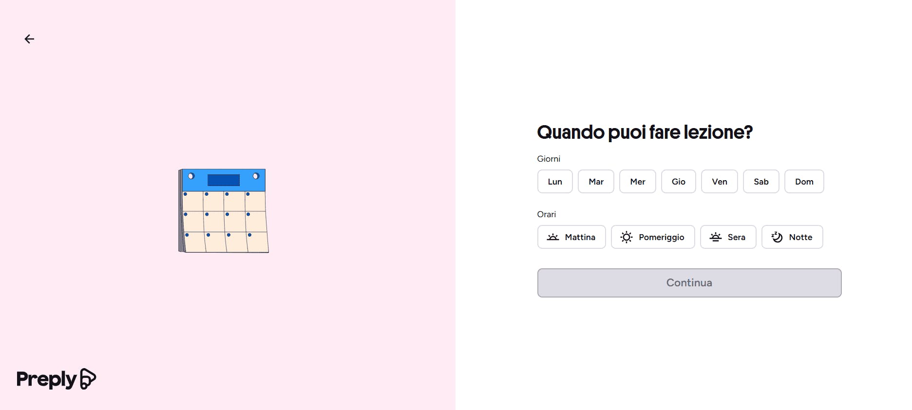 Tuttavia, devi tenere presente che a volte l'orario che desideri potrebbe non essere disponibile oppure l'insegnante potrebbe metterti in lista d'attesa.