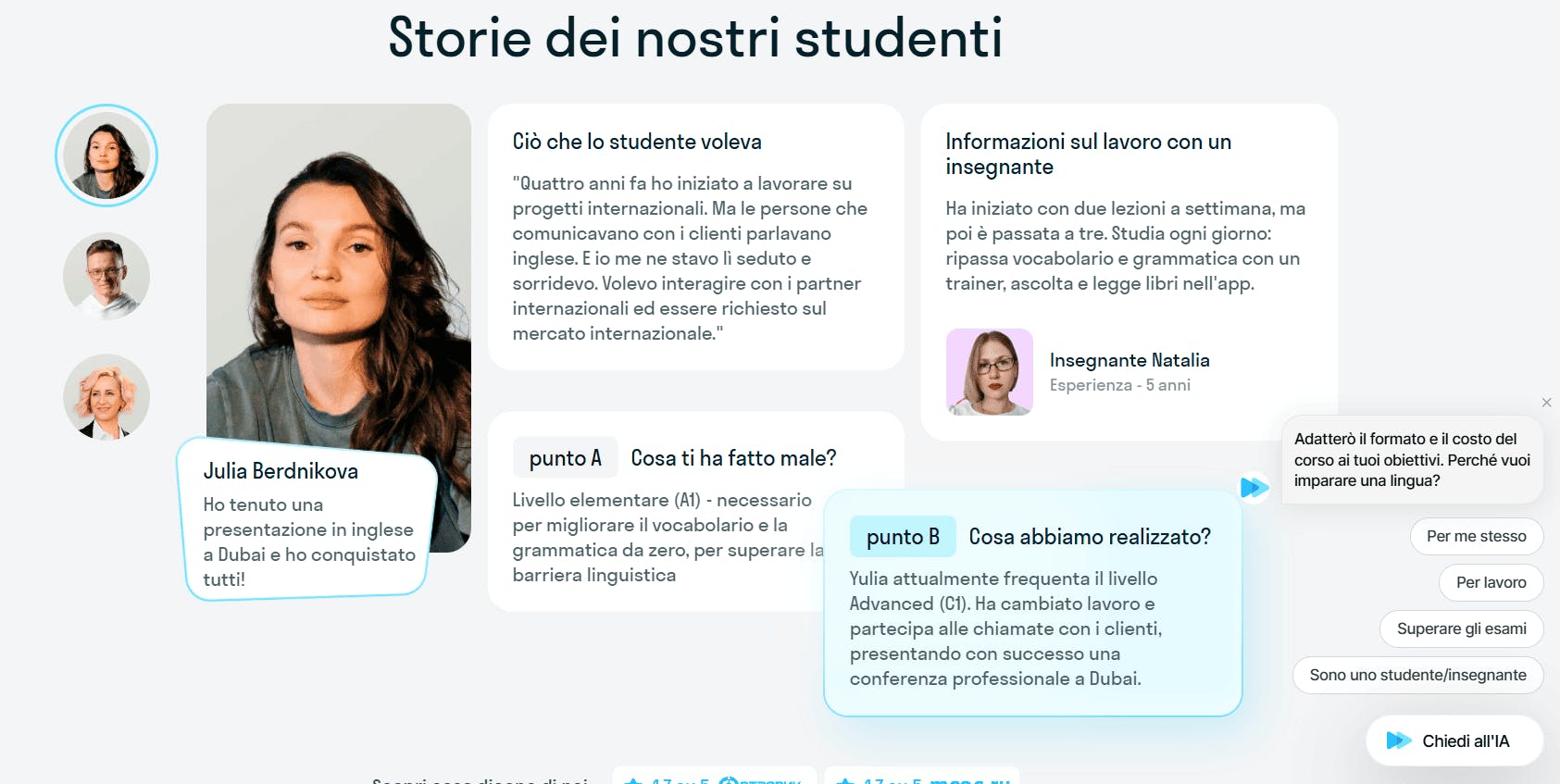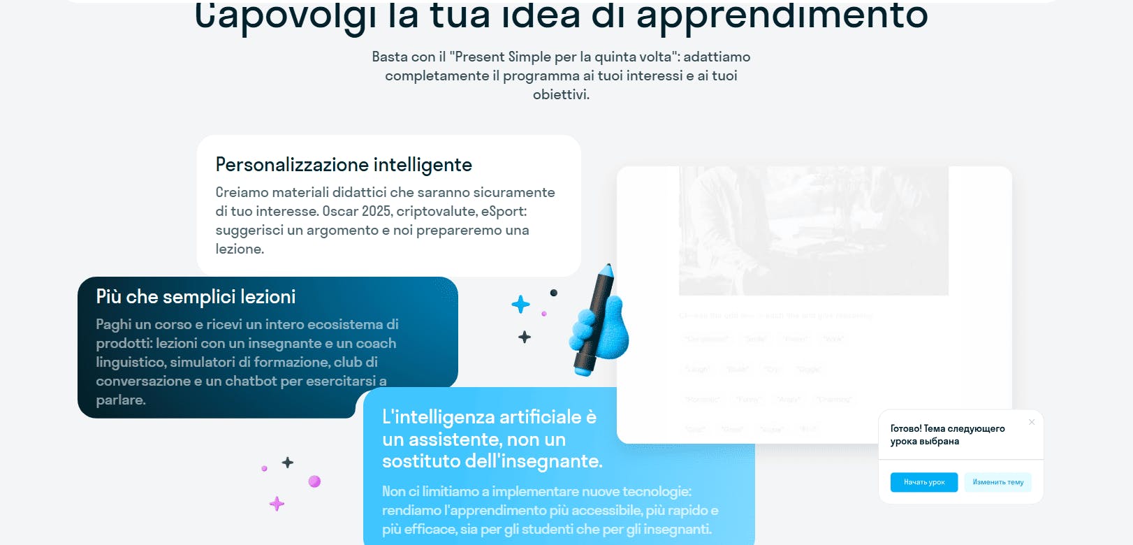 La possibilità di personalizzare l'esperienza di apprendimento in base alla disponibilità dello studente è un plus che Skyeng offre, permettendo di sentire ogni lezione come un momento diverso.