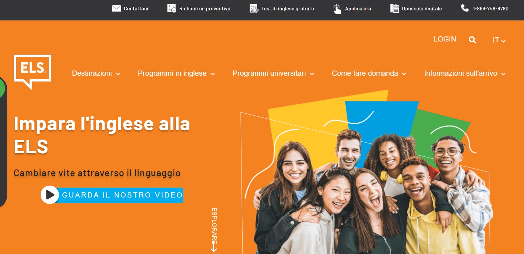 ELS è una scuola di inglese con oltre 60 anni di esperienza nella creazione di programmi per l’apprendimento della lingua. Offrono prevalentemente corsi intensivi, semi-intensivi, soluzioni virtuali e un sistema informale chiamato "explorador americano".