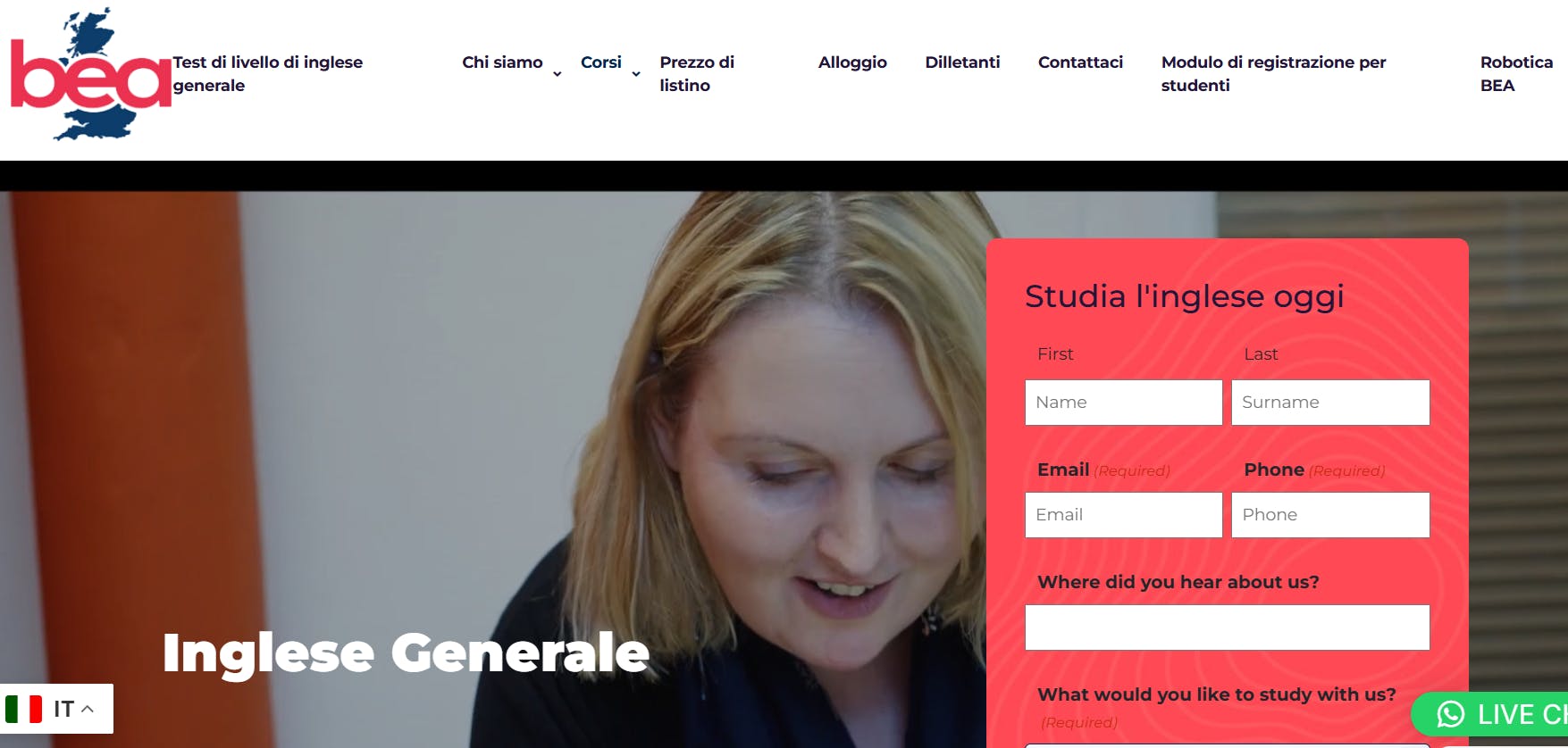 Offre corsi di inglese generale, inglese professionale, preparazione IELTS, certificazione Cambridge e inglese conversazionale.