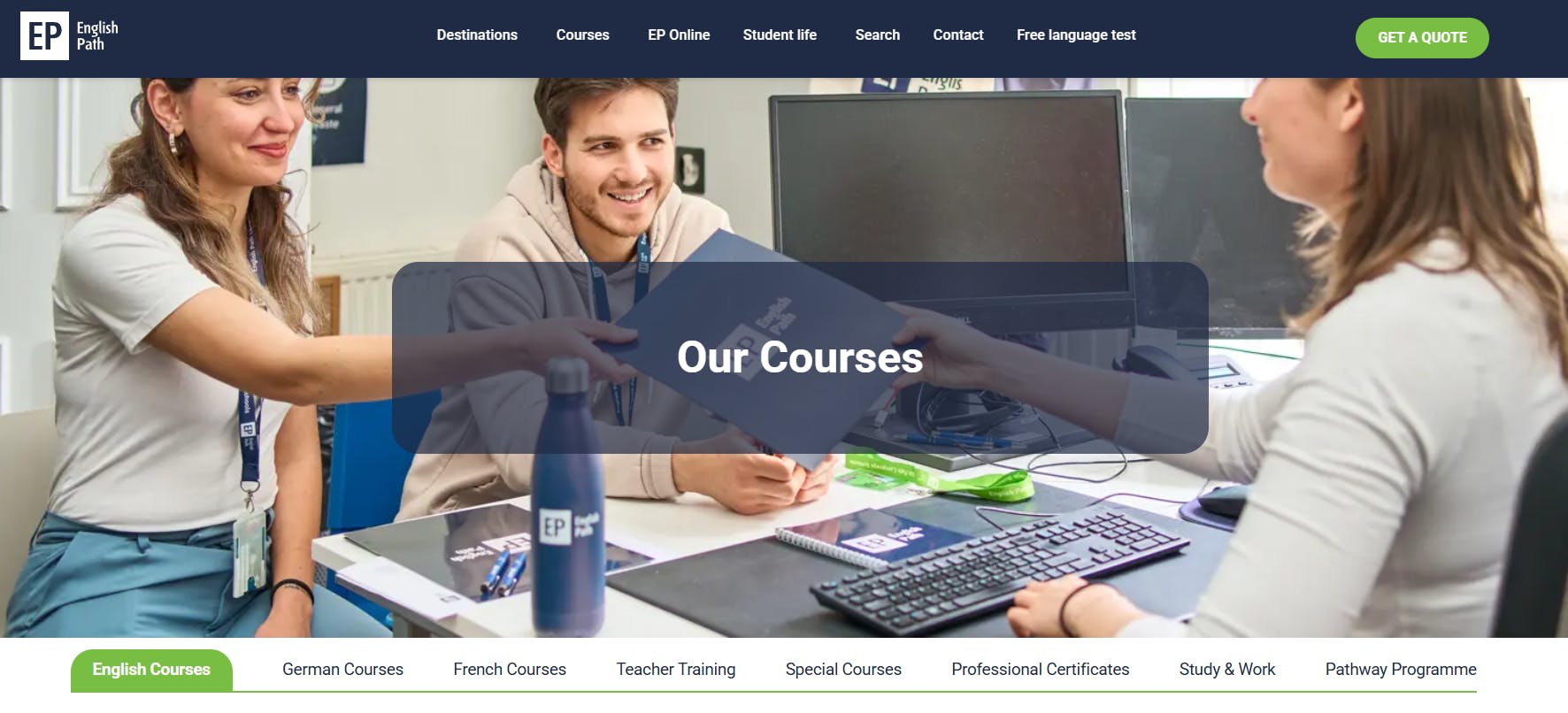 English Path è una scuola con specialisti nell’insegnamento della lingua inglese. I suoi corsi sono disponibili in molte città per soddisfare le esigenze degli utenti.