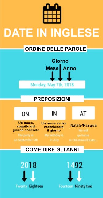 Avrai notato nell’esempio precedente che abbiamo scritto “May 7th”. In italiano si tradurrebbe letteralmente come “maggio settimo”.