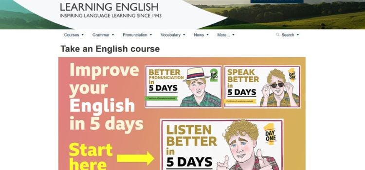 The site is organized into different sections covering vocabulary, grammar, and pronunciation, and it even includes short beginner-friendly courses for those just starting out.