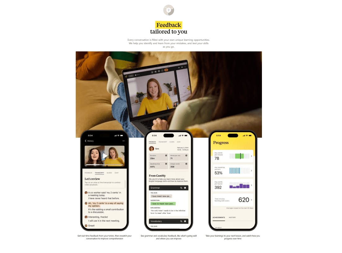 Although Cambly offers a service comparable to many other online schools, one of its strongest advantages is that all teachers are native speakers who adapt to your schedule, with a strong focus on improving pronunciation.
