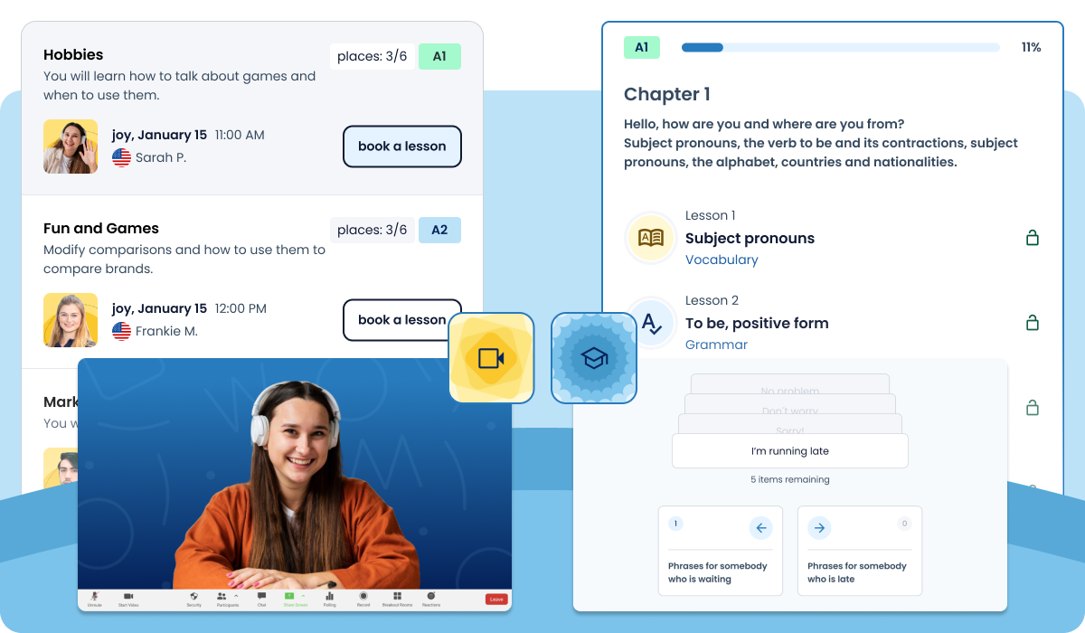 You choose the schedule that best fits your routine, and our teachers focus on encouraging conversation so you can gain fluency and confidence when speaking.
