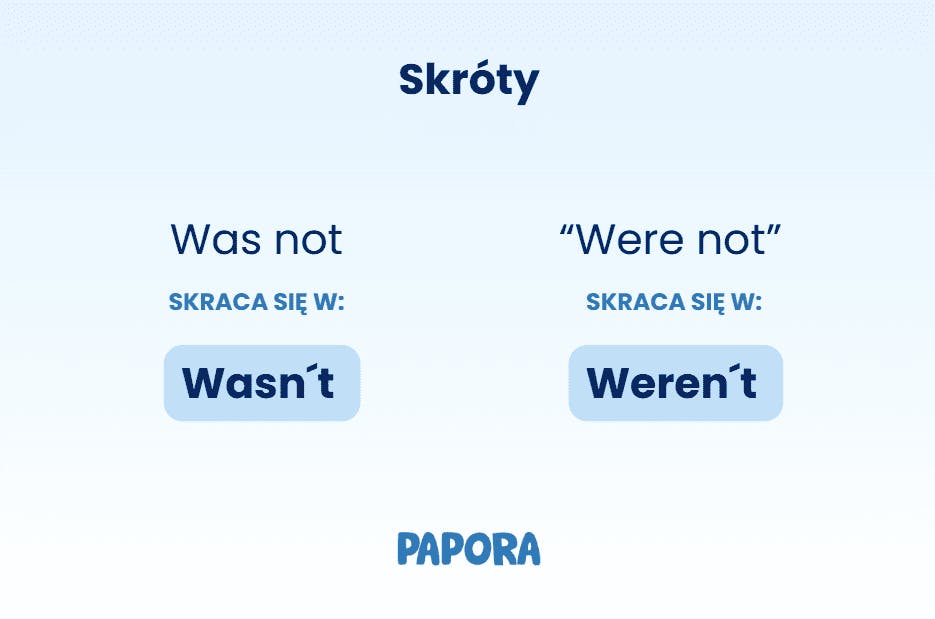 Jak widać, w czasie przeszłym prostym nie tworzy się skrótu między zaimkiem a czasownikiem to be. Zarówno "was", jak i "were" występują samodzielnie.