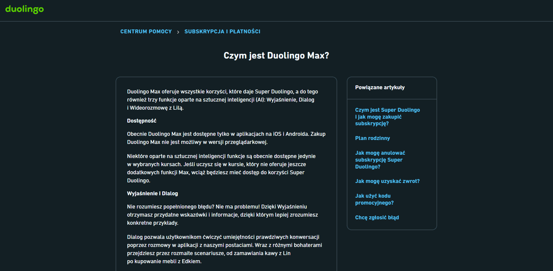 - Duolingo Max - plan premium z funkcjami opartymi na AI