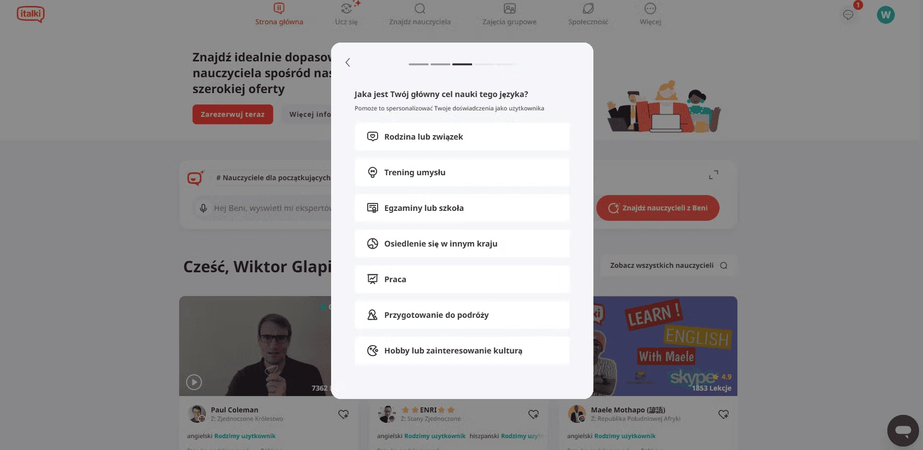 Italki to platforma online, specjalizująca się w nauczaniu wielu różnych języków - od angielskiego po arabski i mandaryński. Działa ona jak katalog, w którym uczniowie mogą wybrać nauczyciela najlepiej odpowiadającego ich wymaganiom i harmonogramowi zajęć.