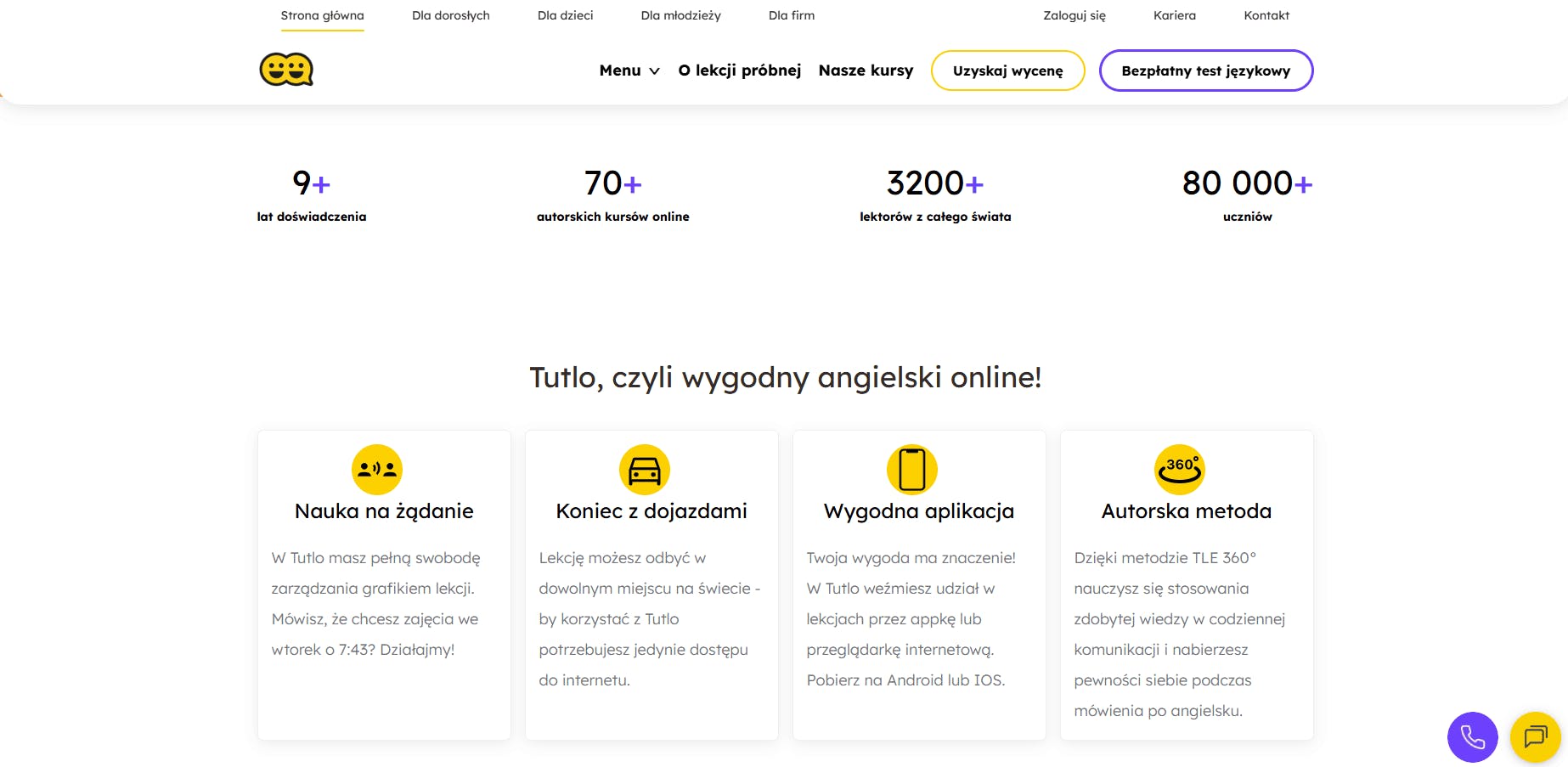 Tutlo to interesująca alternatywa, zwłaszcza jeśli pracujesz lub studiujesz, a Twój harmonogram pozwala jedynie na krótkie, 20-minutowe zajęcia, takie jak te oferowane przez platformę. Te immersyjne zajęcia pozwalają na komunikację z native speakerami w oparciu o wybraną specjalizację lub temat.