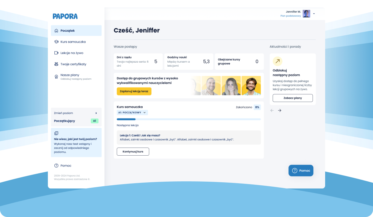 Aby przenieść swoje umiejętności posługiwania się angielskimi przymiotnikami na wyższy poziom, Papora to idealny wybór. Będziesz uczyć się z doświadczonymi nauczycielami na poziomie native speakera podczas zajęć na żywo, dostosowanych do Twoich potrzeb.
