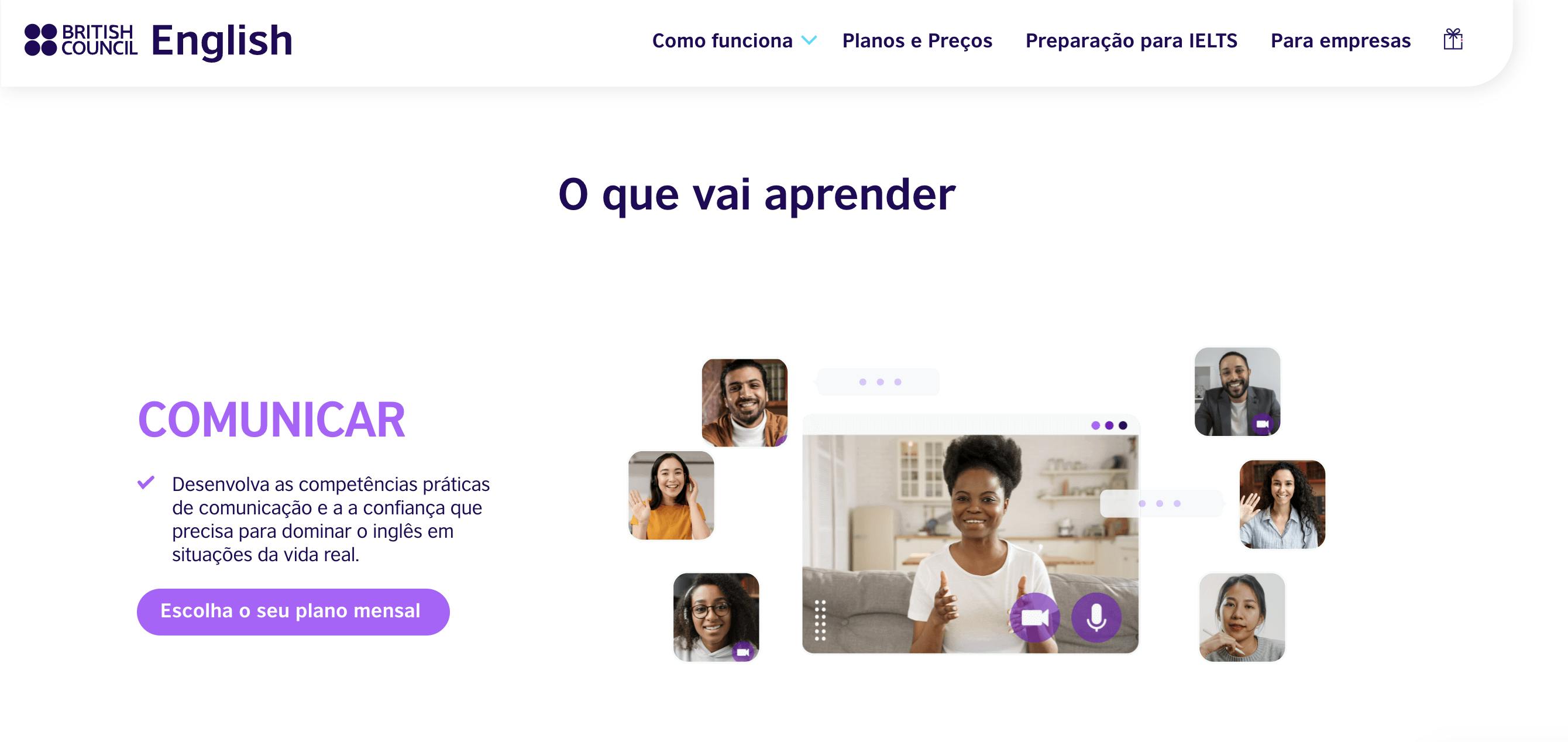 O British Council é uma opção interessante se o seu propósito é mergulhar na cultura britânica e aprender inglês a partir desta perspectiva, com uma ampla variedade temática e planos mensais personalizados.
